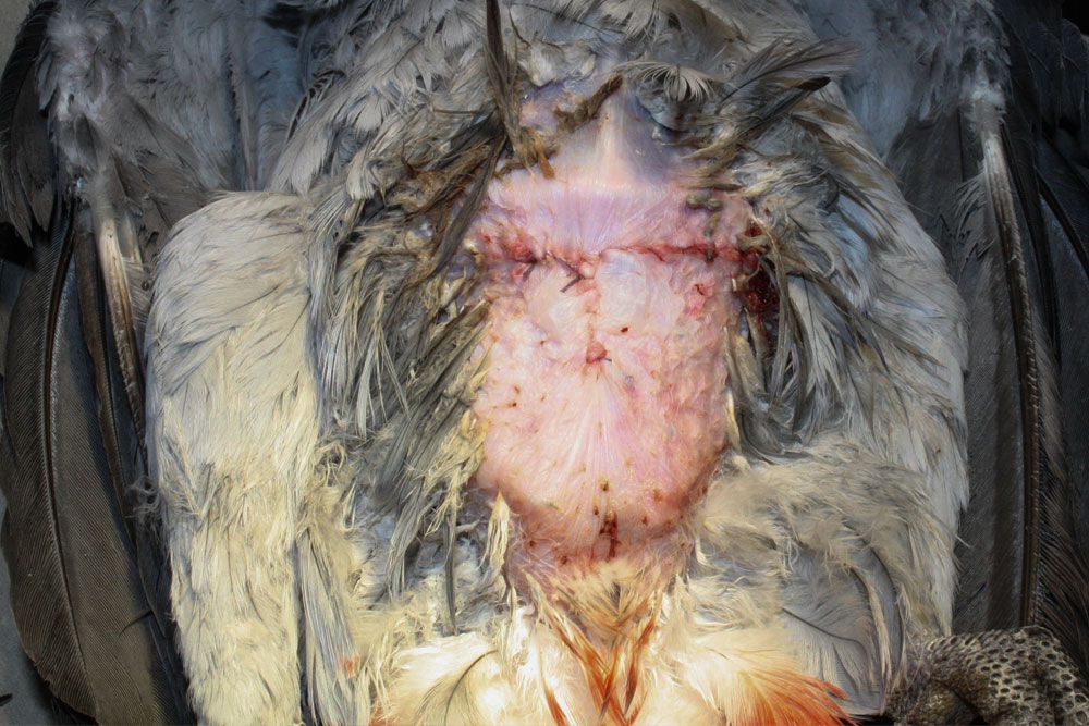 Anschließend wurde der Muskelmagen wieder verschlossen und zurückverlagert. Nachdem abschließend auch die Bauchhöhle wieder verschlossen wurde konnte der Vogel wieder aus der Narkose geholt werden.