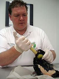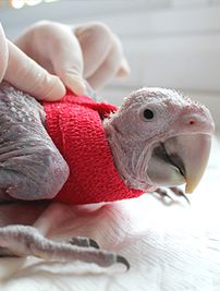 bei der Fütterung. In manchen Fällen ist eine zeitweise stationäre Unterbringung beim auf Vögel spezialisierten Tierarzt notwendig.